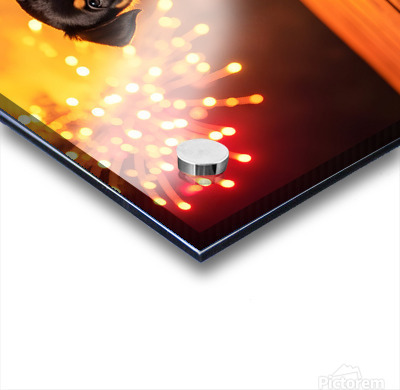 Rottweiler Puppy Watches First Fireworks Display Picture Frame Printing