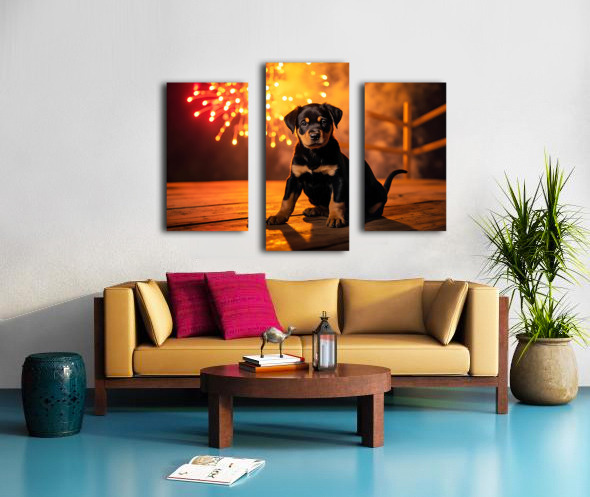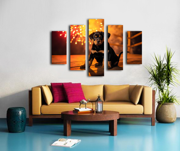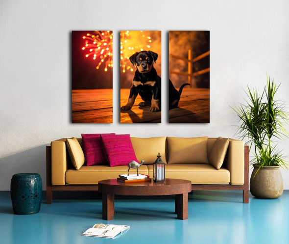 Rottweiler Puppy Watches First Fireworks Display Canvas print