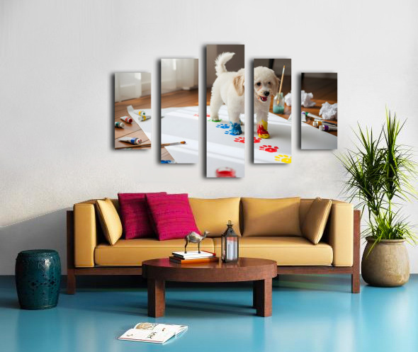 Proud Poodle Puppy With Finished Paw Print Masterpiece Canvas print