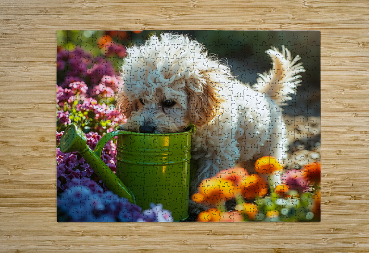 Free Poodle Puppy Sits By Overturned Watering Can Puppy Prints Puzzle printing