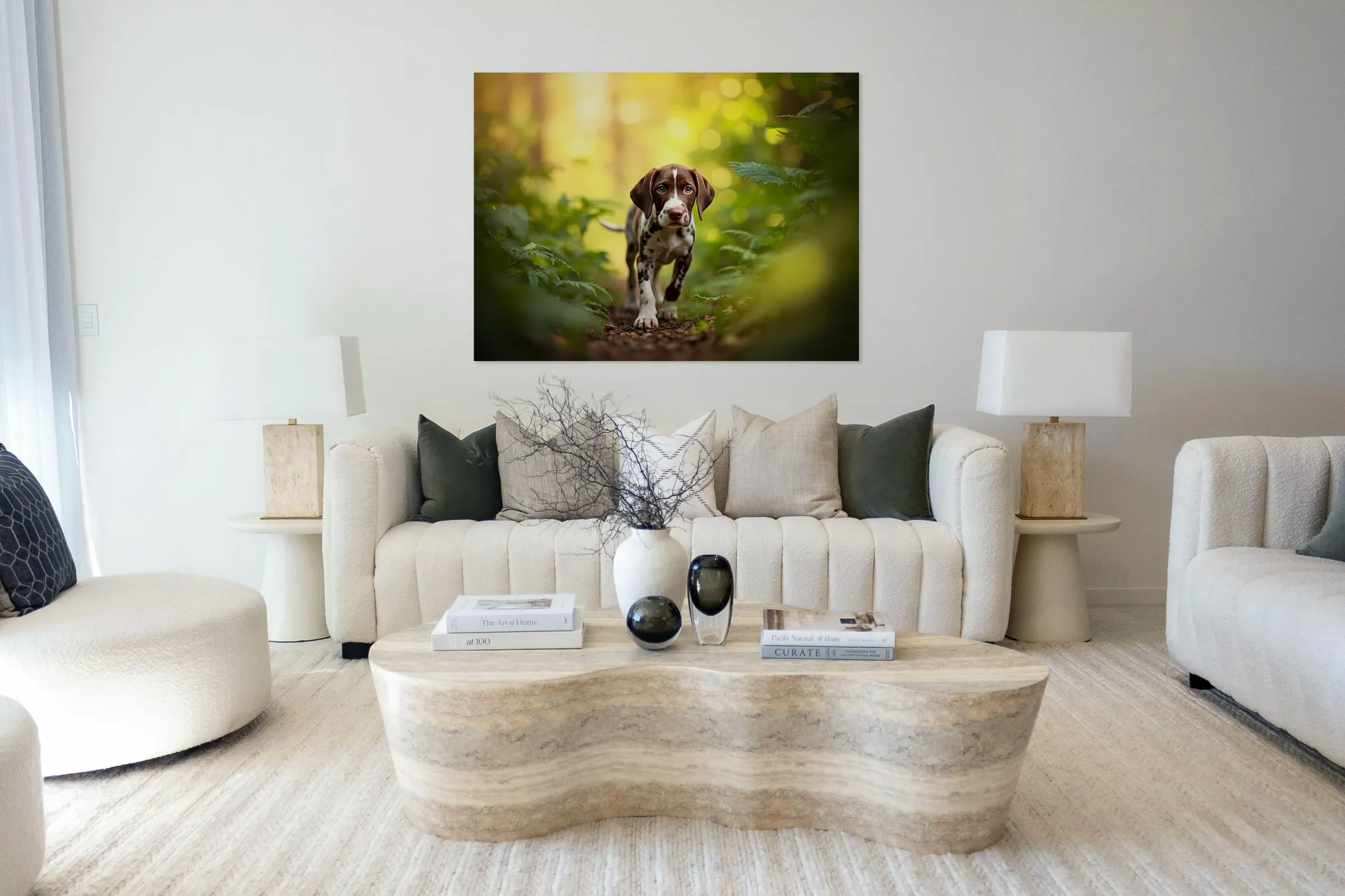 German Shorthaired Pointer Puppy Explores Forest Trail Canvas print