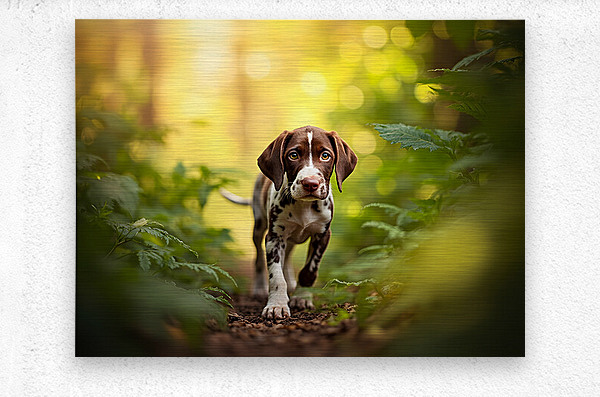 ABOUT THIS ARTWORK: GERMAN SHORTHAIRED POINTER PUPPY EXPLORES FOREST TRAIL