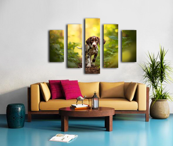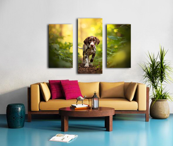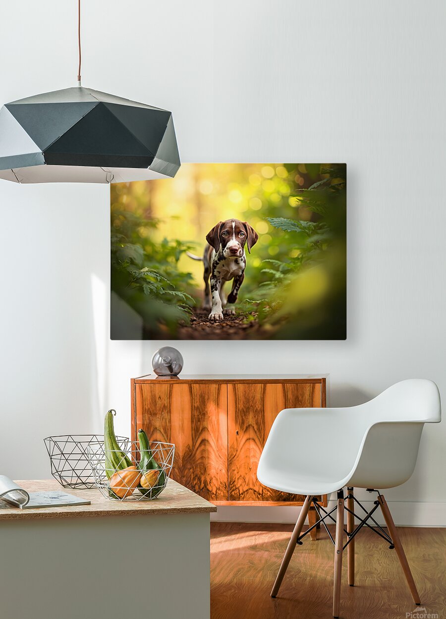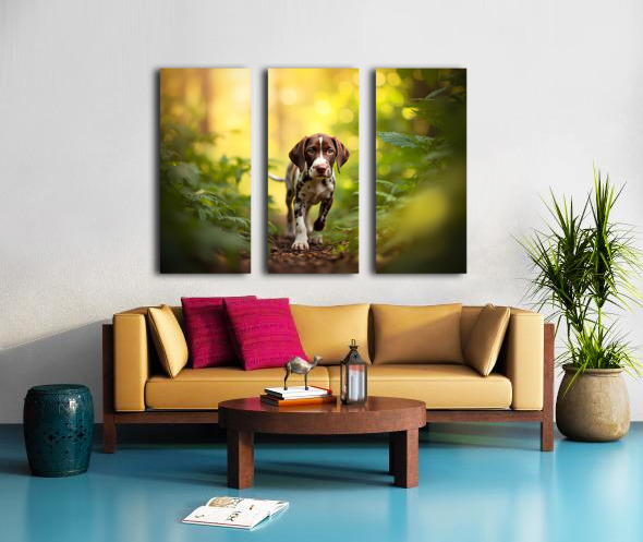 German Shorthaired Pointer Puppy Explores Forest Trail Canvas print