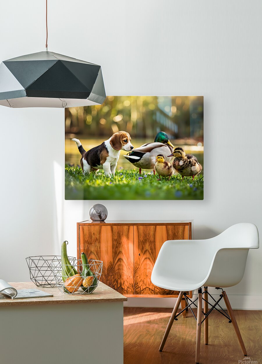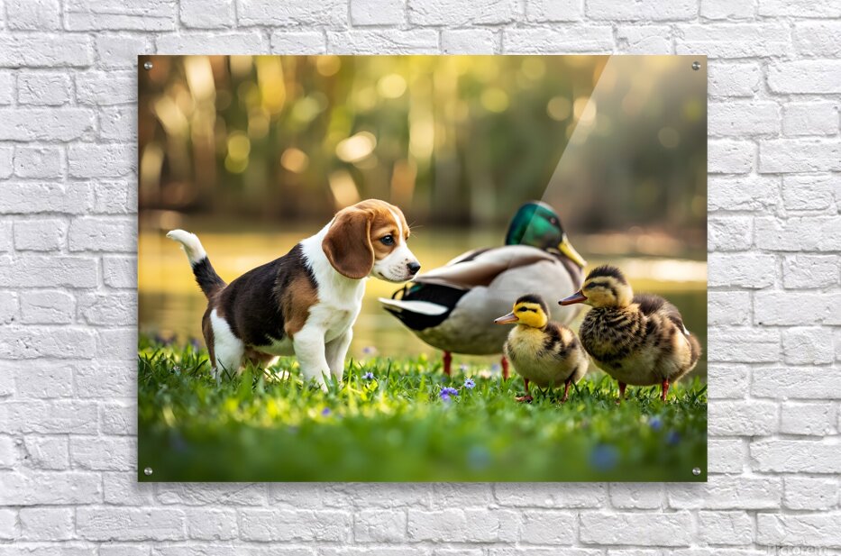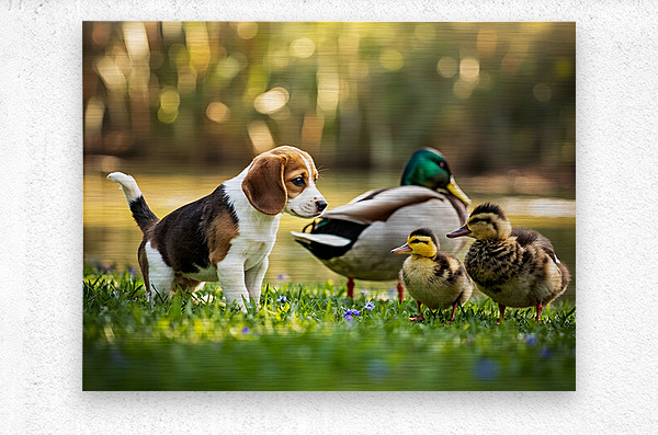 ABOUT THIS ARTWORK: BEAGLE PUPPYS PEACEFUL MOMENT WITH DUCK FRIENDS