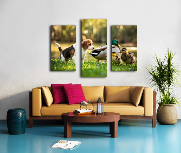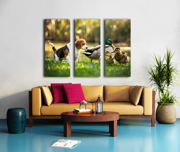 Beagle Puppys Peaceful Moment With Duck Friends Canvas print
