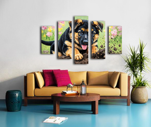 German Shepherd Puppy Discovers Perfect Digging Spot Canvas print