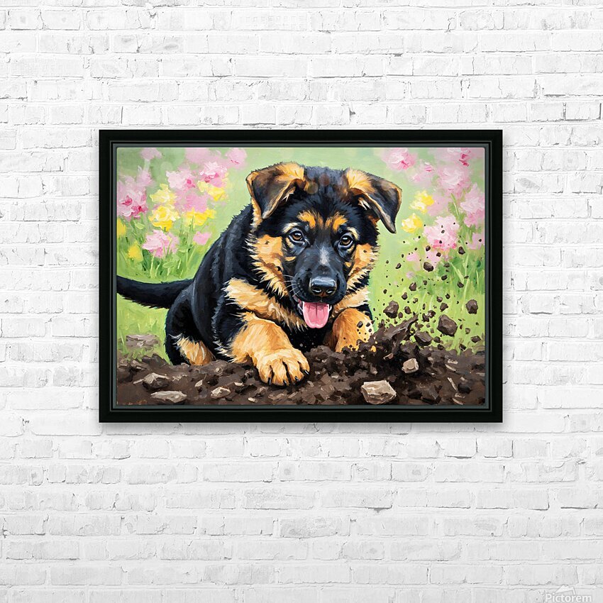 German Shepherd Puppy Discovers Perfect Digging Spot Picture Frame Printing