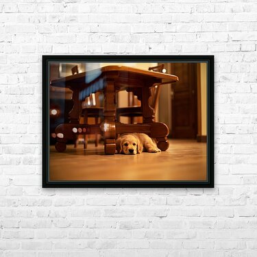 Curious Puppy Peeks From Behind Bookshelf Picture Frame Printing