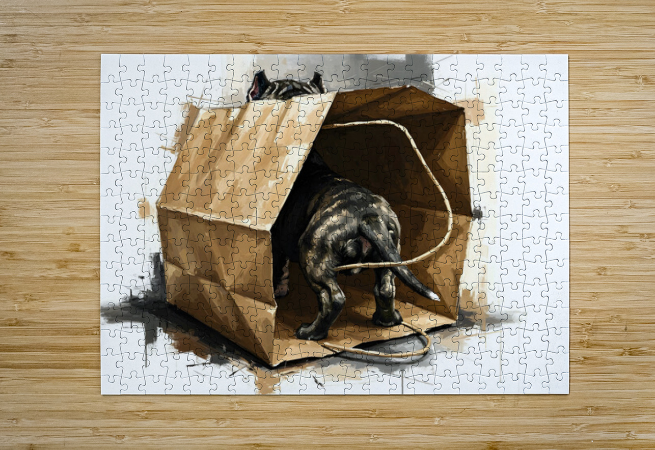 Happy Cane Corso Puppy Emerges From Shopping Bag Fun Puppy Prints Puzzle printing