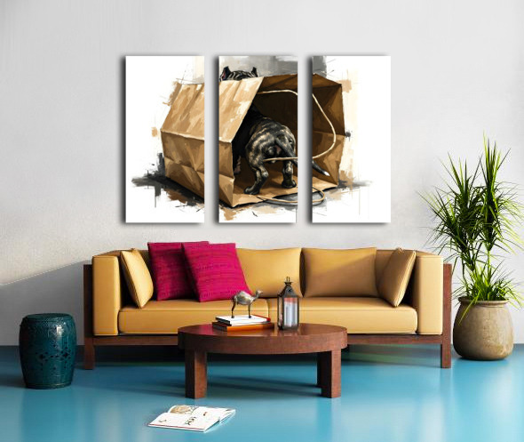 Happy Cane Corso Puppy Emerges From Shopping Bag Fun Canvas print