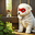 The victorious white Bichon Frise puppy stands proudly beside the rescued kitten in an open meadow. Both animals appear happy and safe with the masked...[+]