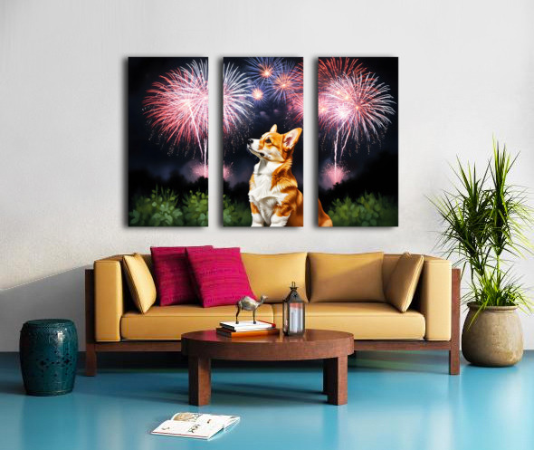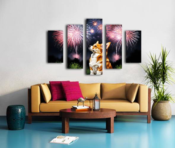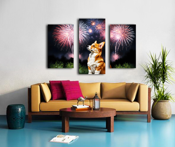 Happy Corgi Puppy Wags Tail After Fireworks End Canvas print