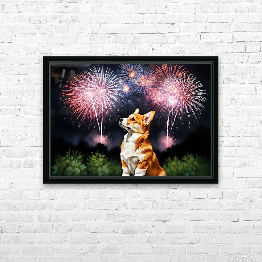 Happy Corgi Puppy Wags Tail After Fireworks End Picture Frame Printing