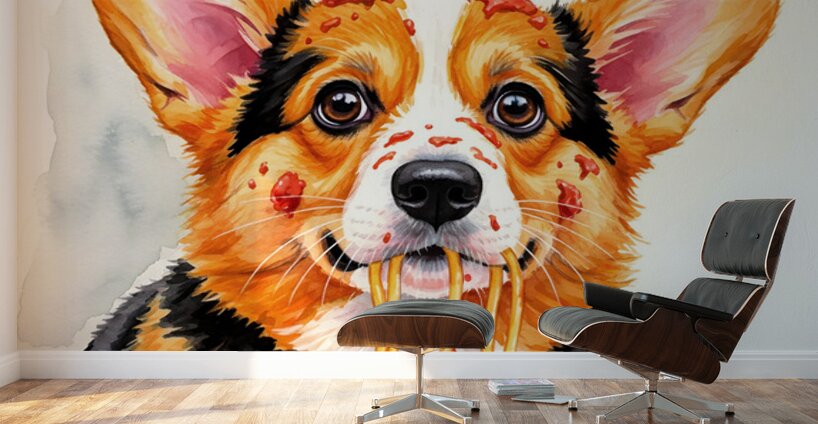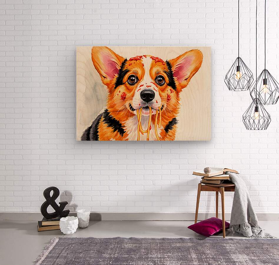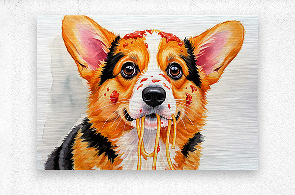 ABOUT THIS ARTWORK: SATISFIED CORGI PUPPY AFTER SPAGHETTI MEAL