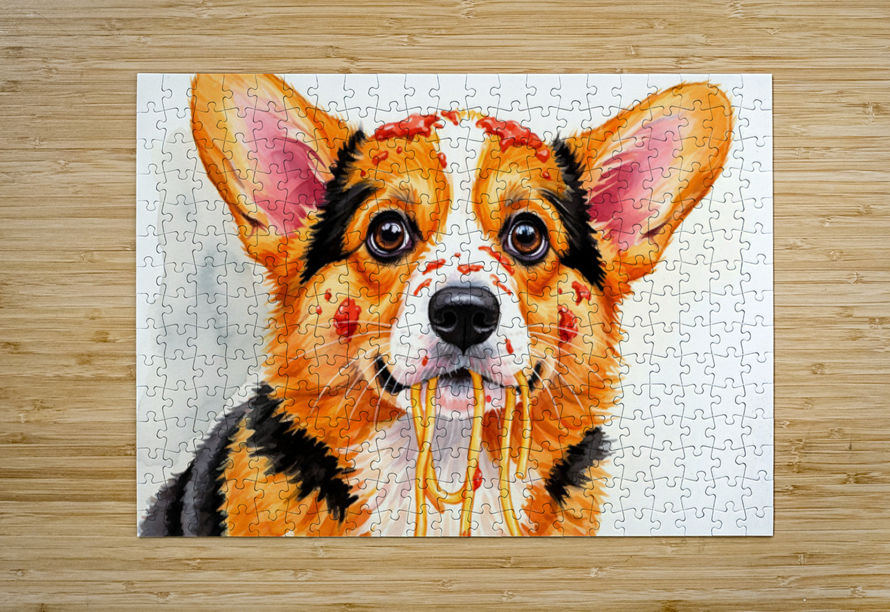 Satisfied Corgi Puppy After Spaghetti Meal Puppy Prints Puzzle printing