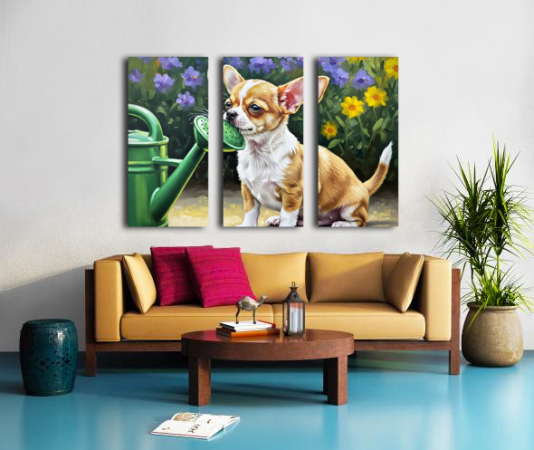 Chihuahua Puppy Discovers Garden Watering Can Picture Frame Printing