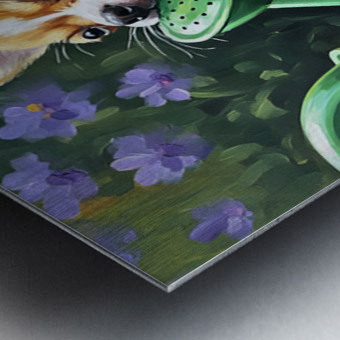 ABOUT THIS ARTWORK: CHIHUAHUA PUPPY DISCOVERS GARDEN WATERING CAN