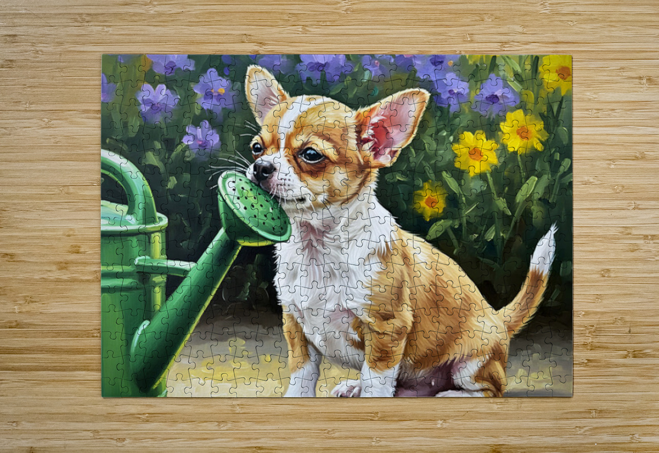 Chihuahua Puppy Discovers Garden Watering Can Puppy Prints Puzzle printing