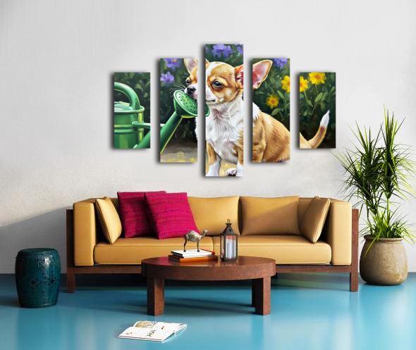 Chihuahua Puppy Discovers Garden Watering Can Picture Frame Printing