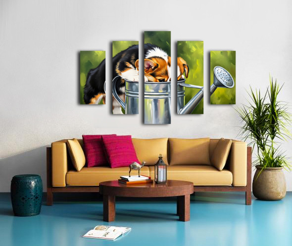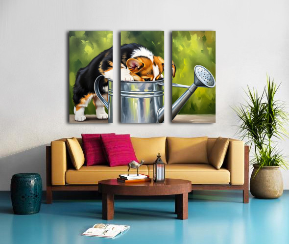 Wet Corgi Puppy Emerges From Watering Can Adventure Canvas print