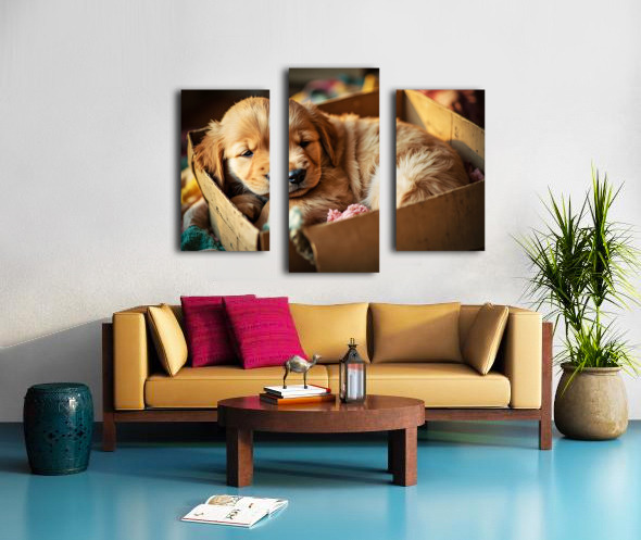 Golden Retriever Puppy Ready To Leave Box Fort Canvas print