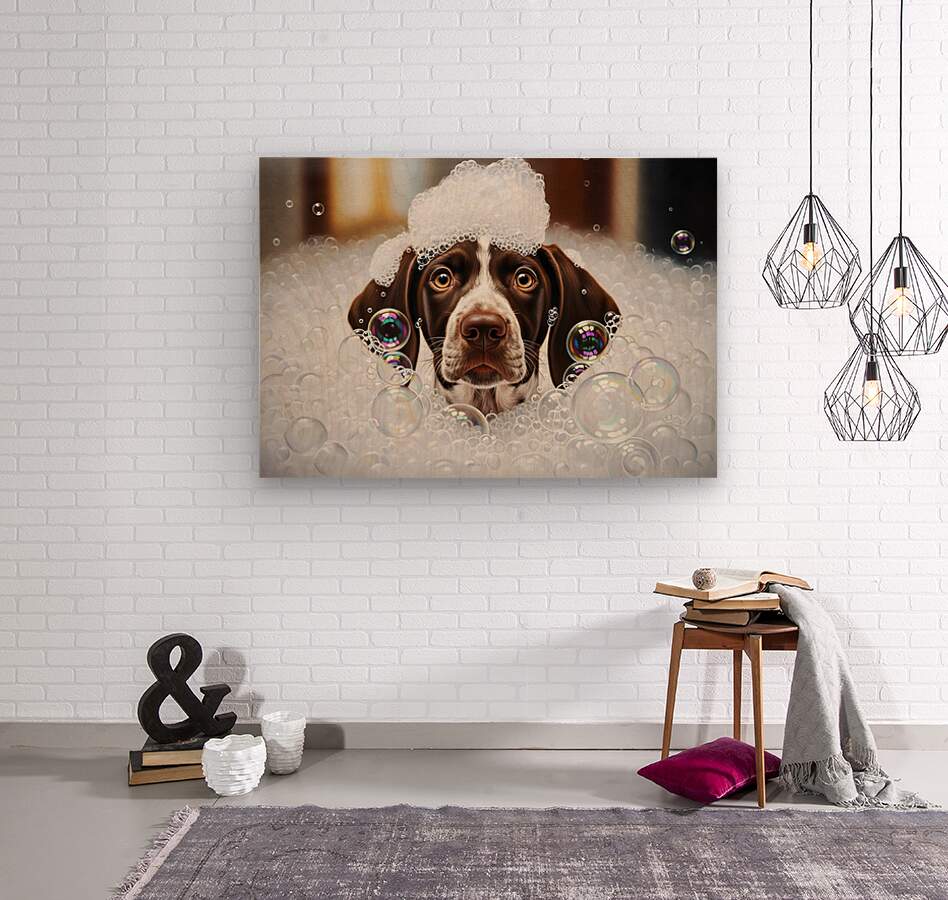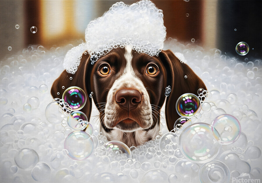 ABOUT THIS ARTWORK: GERMAN SHORTHAIRED POINTER PUPPY SHAKES OFF THE BUBBLES