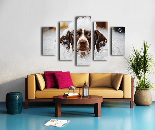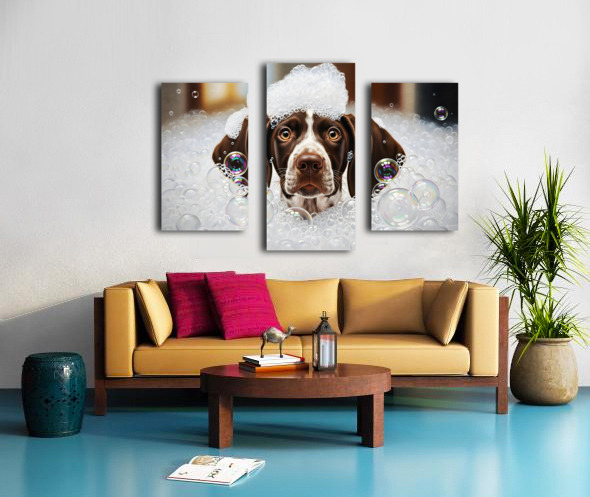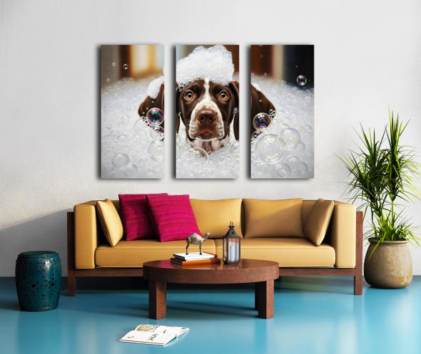 German Shorthaired Pointer Puppy Shakes Off The Bubbles Canvas print