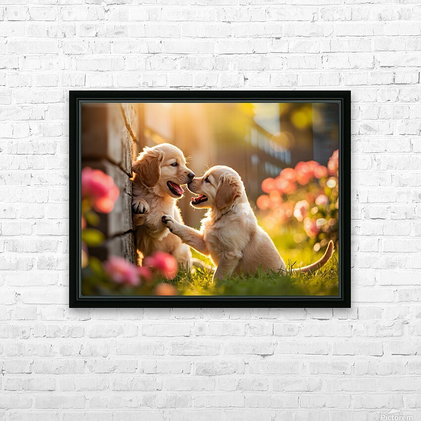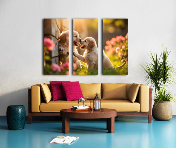 Golden Puppy Happy With New Fence Friend Canvas print