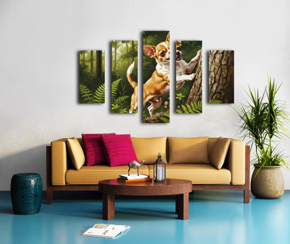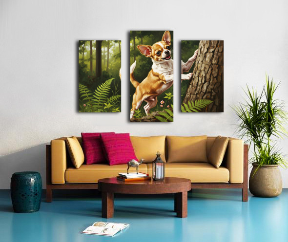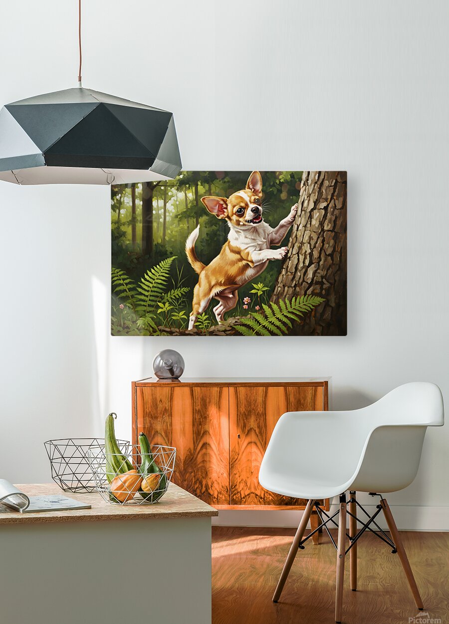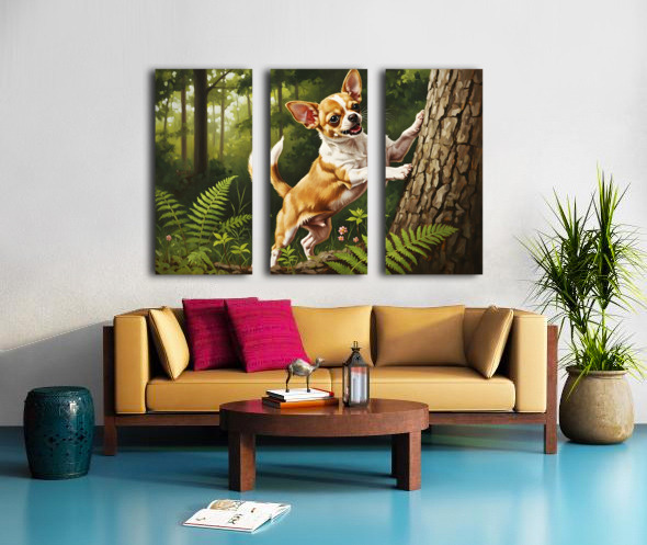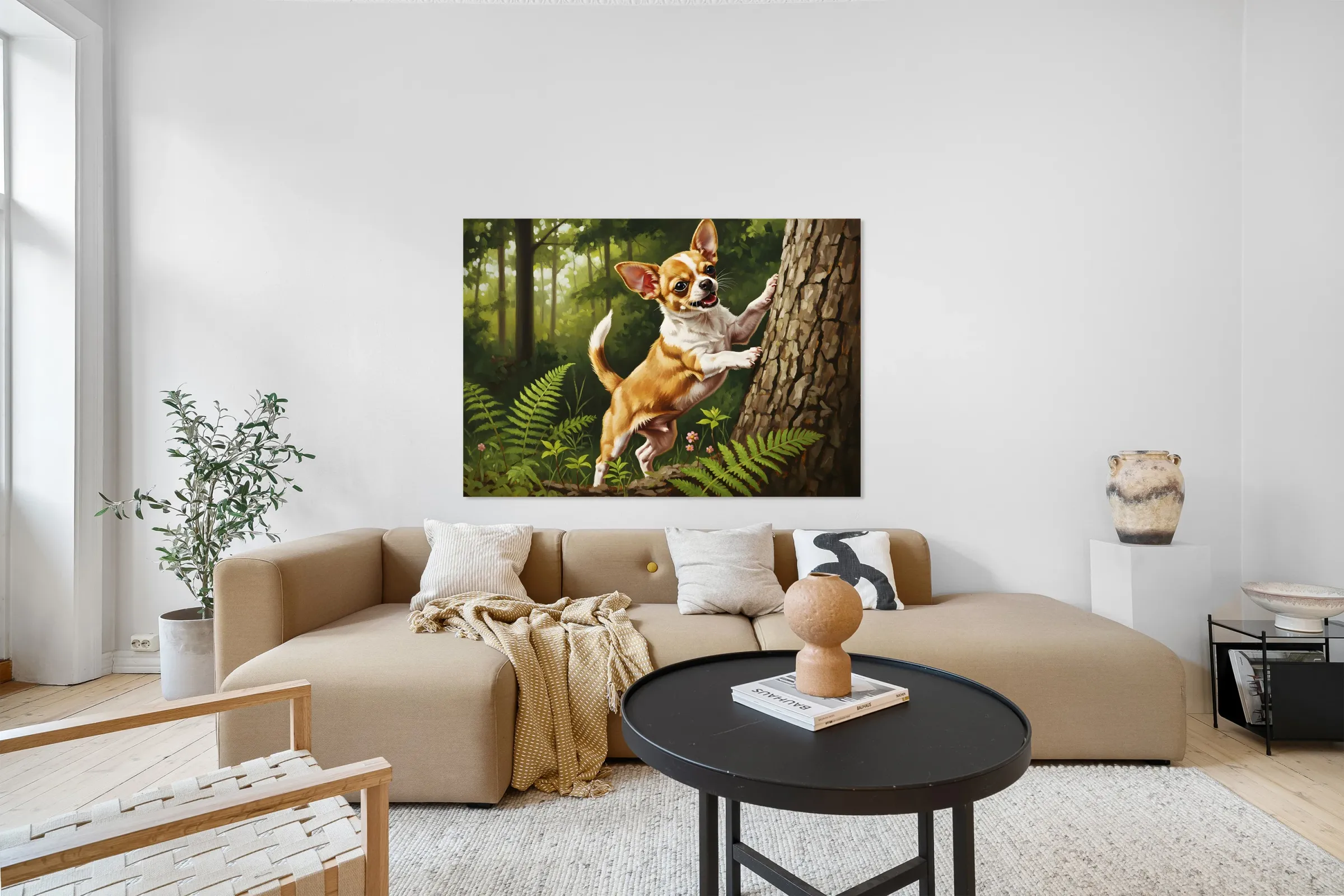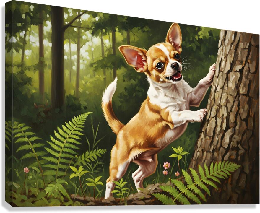 Chihuahua Puppy Spots Squirrel In Tree Canvas print