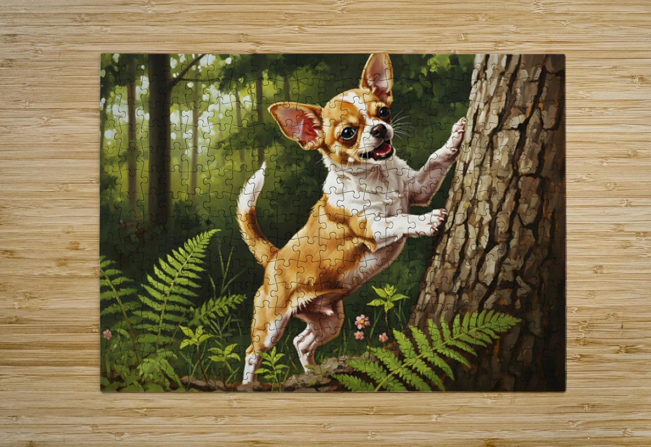 Chihuahua Puppy Spots Squirrel In Tree Puppy Prints Puzzle