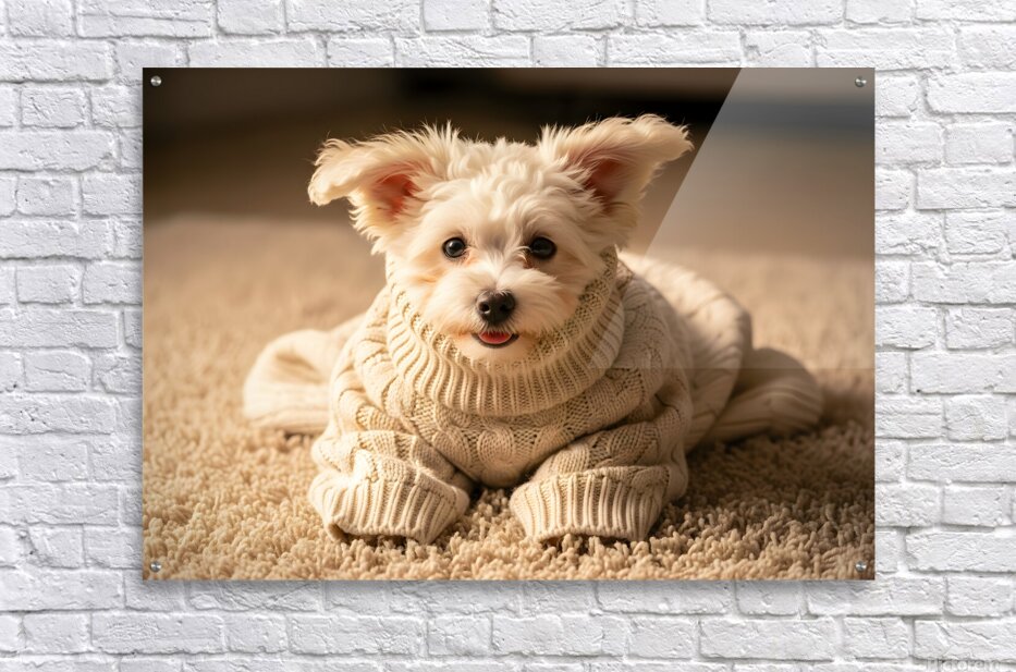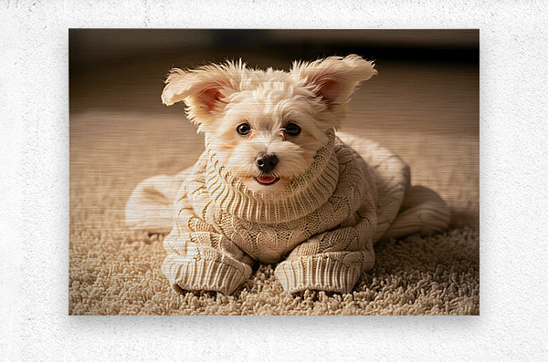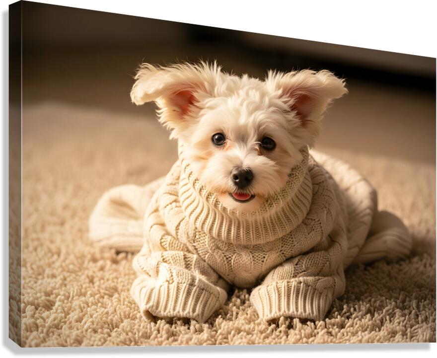 Get this artwork "Proud Bichon Frise Puppy Wearing Cozy Sweater" in a framed print.