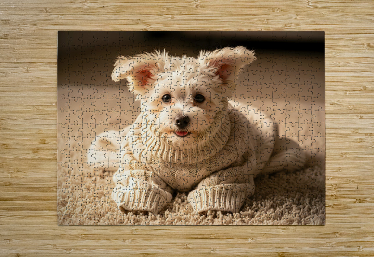 Proud Bichon Frise Puppy Wearing Cozy Sweater Puppy Prints Puzzle printing