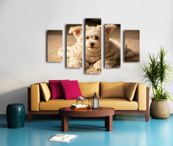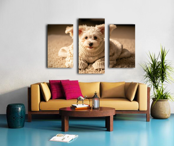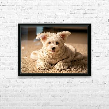 Proud Bichon Frise Puppy Wearing Cozy Sweater Picture Frame Printing