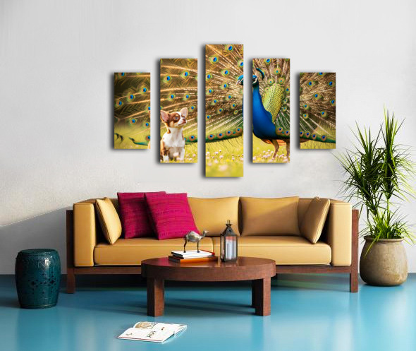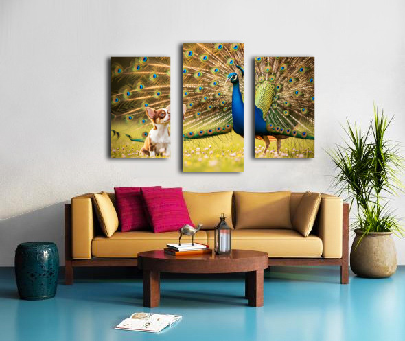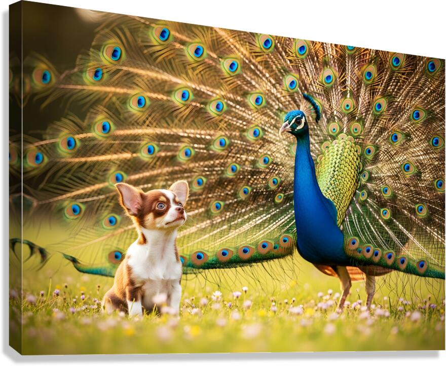 Chihuahua Puppy Tries To Copy Peacocks Elegance Canvas print