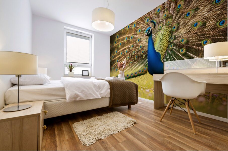 Get this artwork "Chihuahua Puppy Tries To Copy Peacocks Elegance" in a framed print.