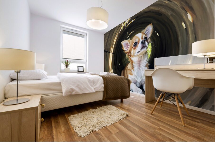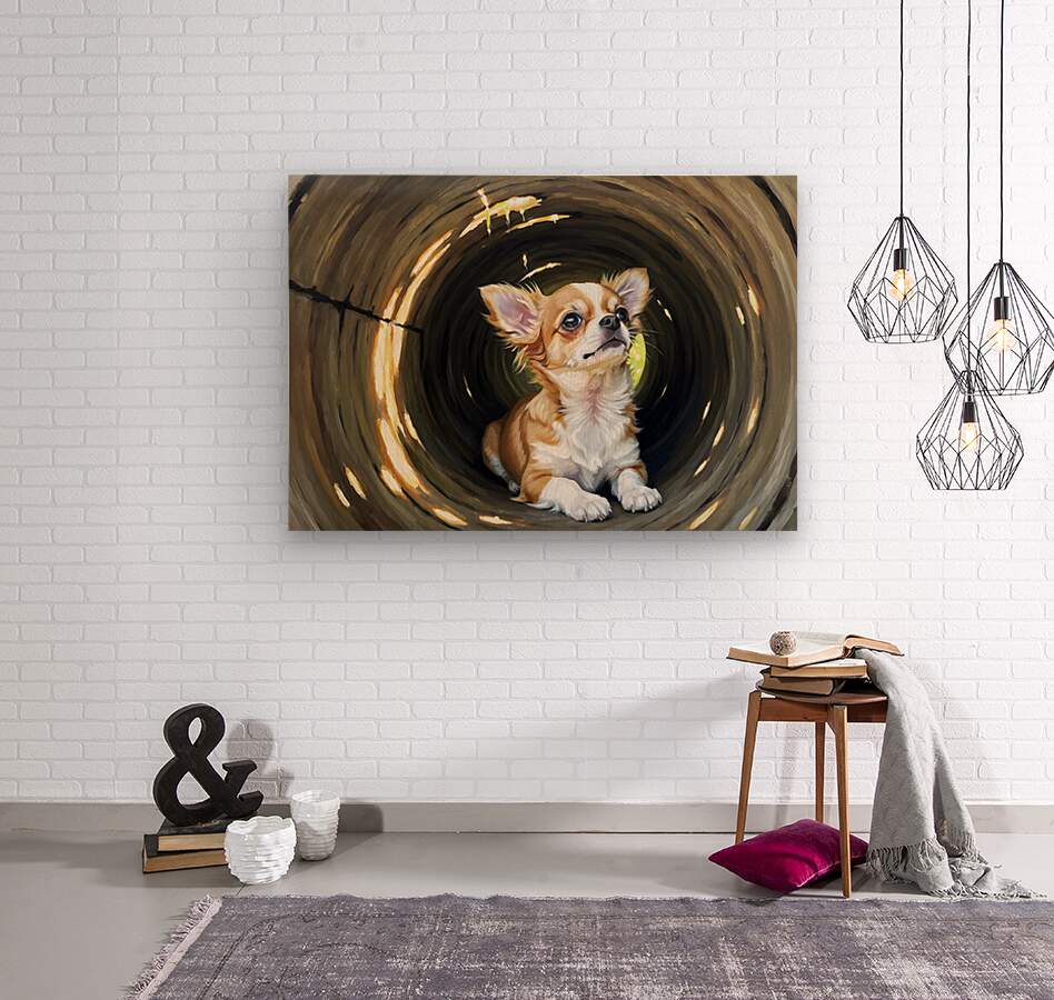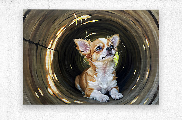 ABOUT THIS ARTWORK: HAPPY CHIHUAHUA PUPPY EXITS LOG ADVENTURE