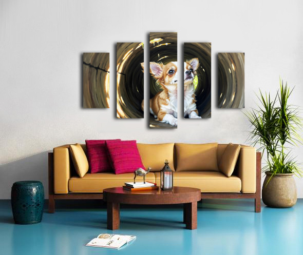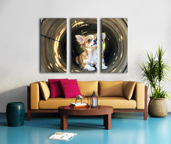 Happy Chihuahua Puppy Exits Log Adventure Canvas print