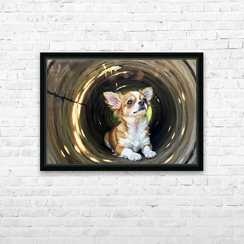 Happy Chihuahua Puppy Exits Log Adventure Picture Frame Printing