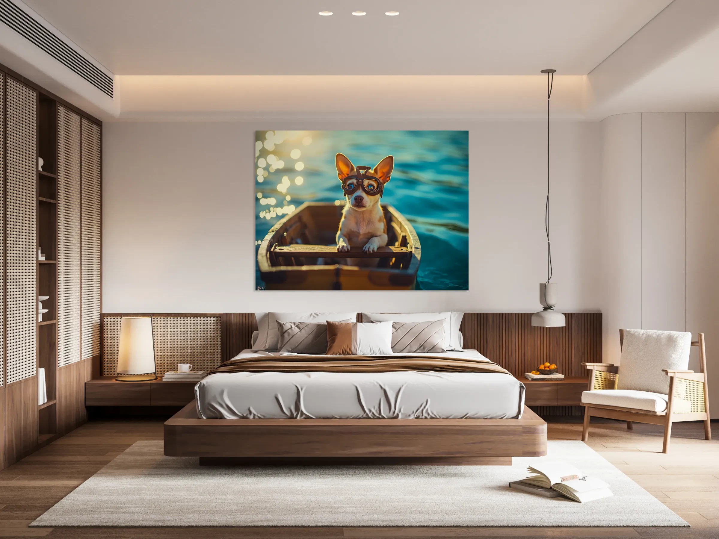 ABOUT THIS ARTWORK: CHIHUAHUA PUPPY AT LAKE WITH AVIATOR GOGGLES