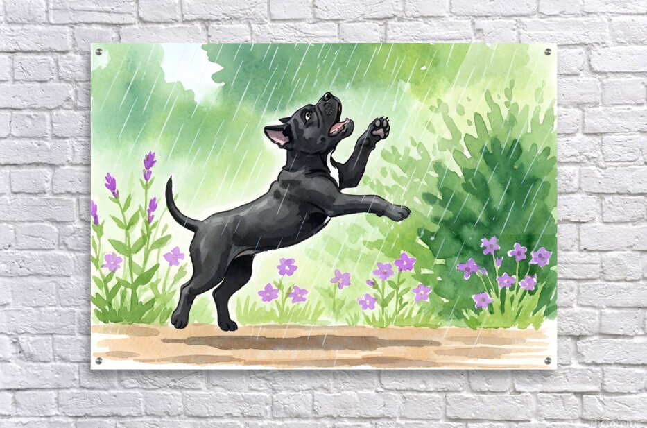 Get this artwork "Cane Corso Puppy Discovers Rain In The Garden" in a framed print.