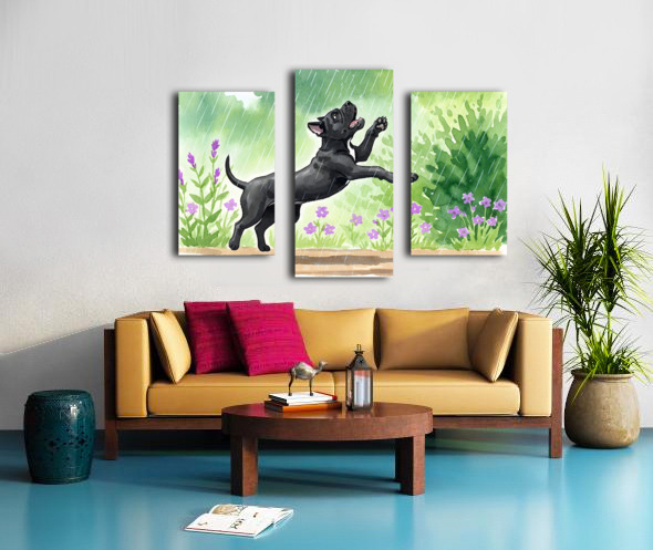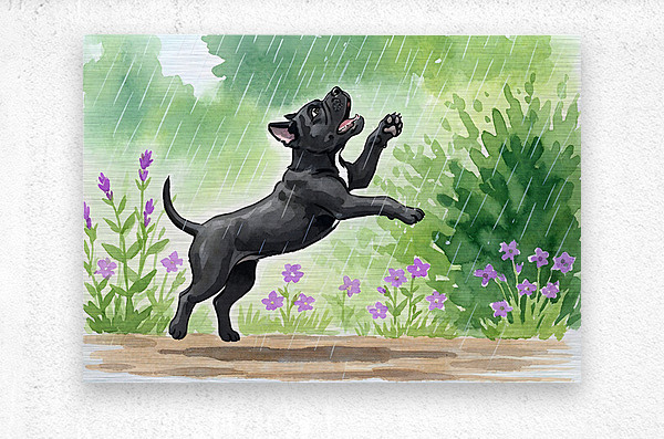 ABOUT THIS ARTWORK: CANE CORSO PUPPY DISCOVERS RAIN IN THE GARDEN