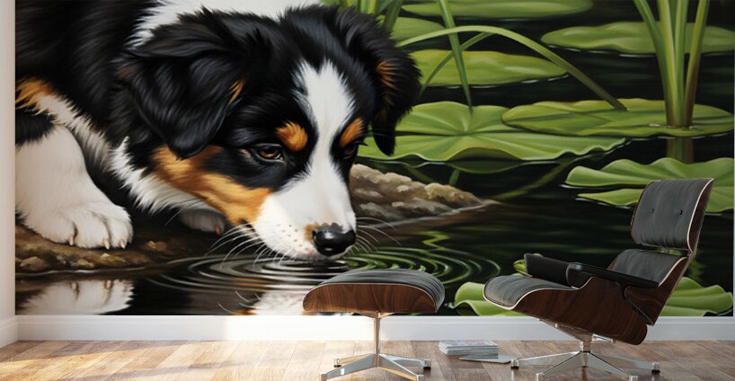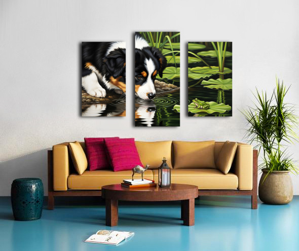 Australian Shepherd Puppy Discovers A Quiet Pond Canvas print
