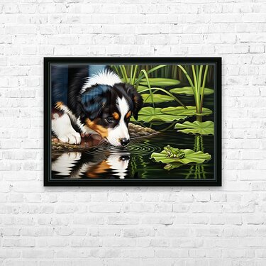 Australian Shepherd Puppy Discovers A Quiet Pond Puppy Prints Puzzle printing