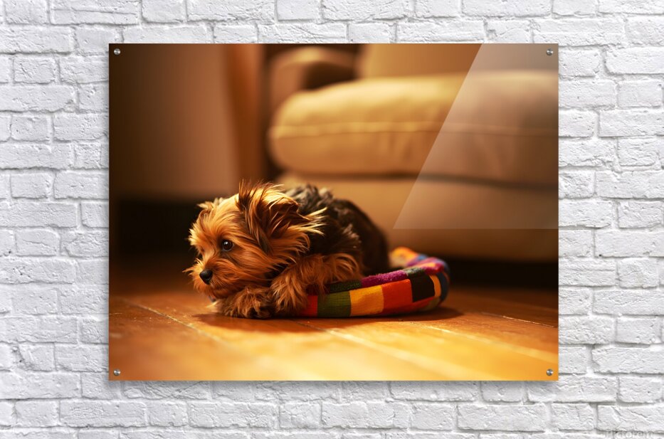 Get this artwork "Happy Yorkshire Terrier Puppy Plays With Toy" in a framed print.