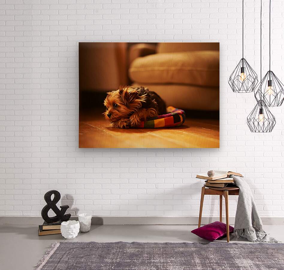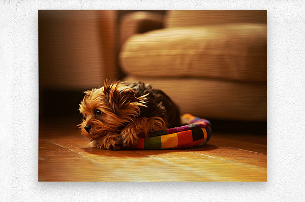 ABOUT THIS ARTWORK: HAPPY YORKSHIRE TERRIER PUPPY PLAYS WITH TOY
