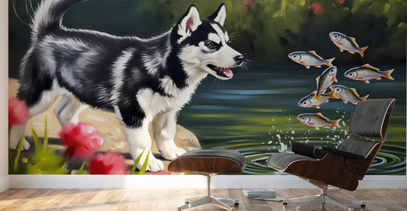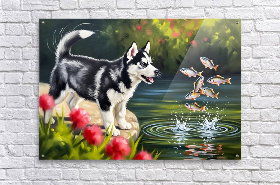Get this artwork "Happy Husky Puppy Enjoys Pond Watching" in a framed print.