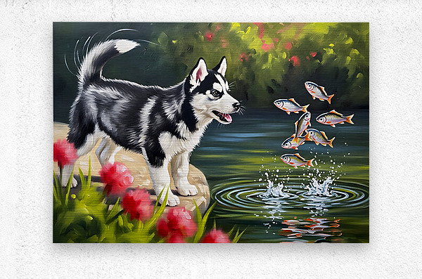 ABOUT THIS ARTWORK: HAPPY HUSKY PUPPY ENJOYS POND WATCHING