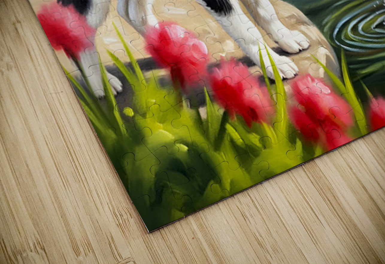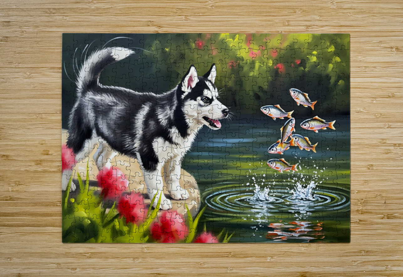 Happy Husky Puppy Enjoys Pond Watching Puppy Prints Puzzle printing