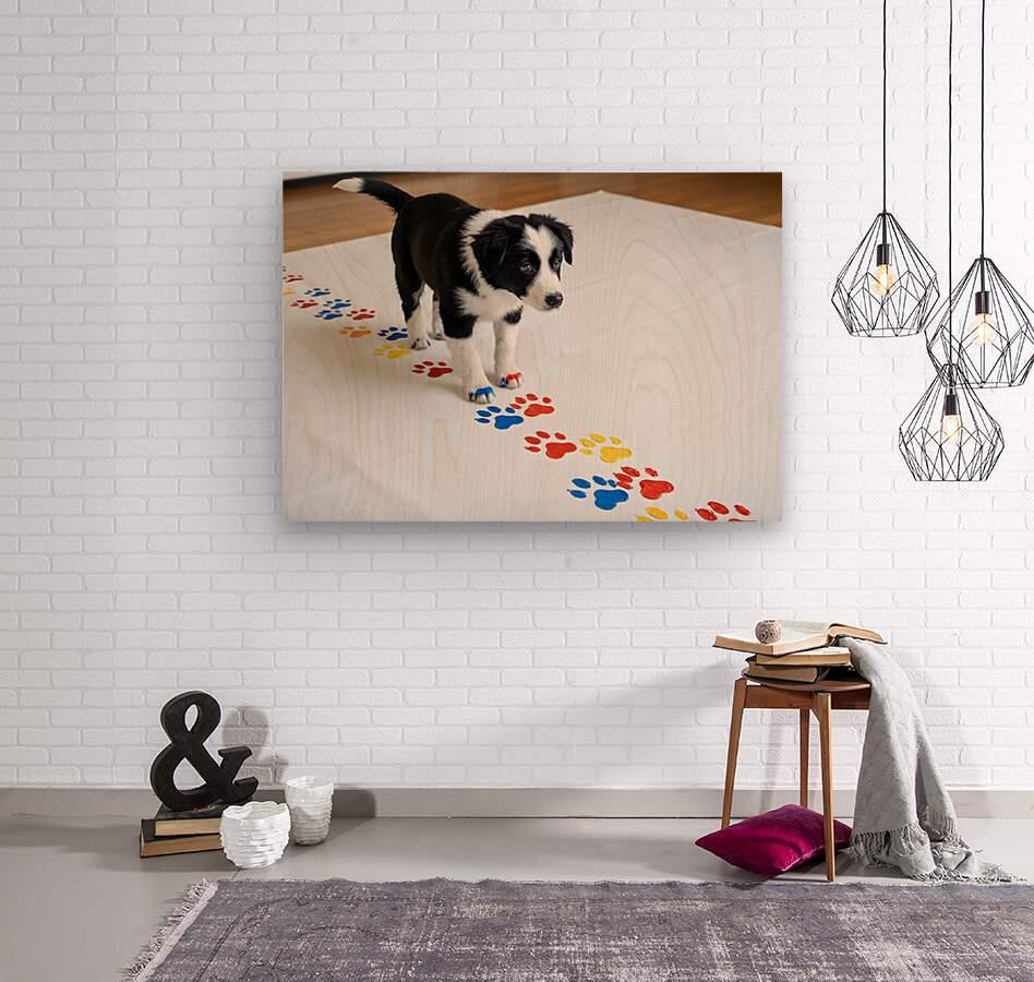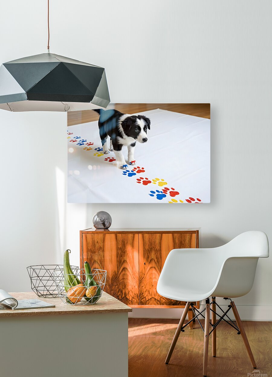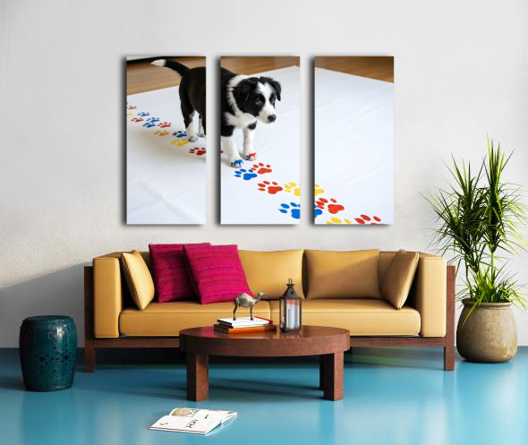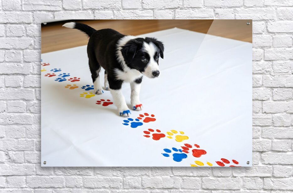 Border Collie Puppy Proudly Shows Off Finished Paw Art Puppy Prints Puzzle printing