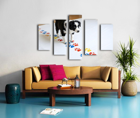 Border Collie Puppy Proudly Shows Off Finished Paw Art Canvas print